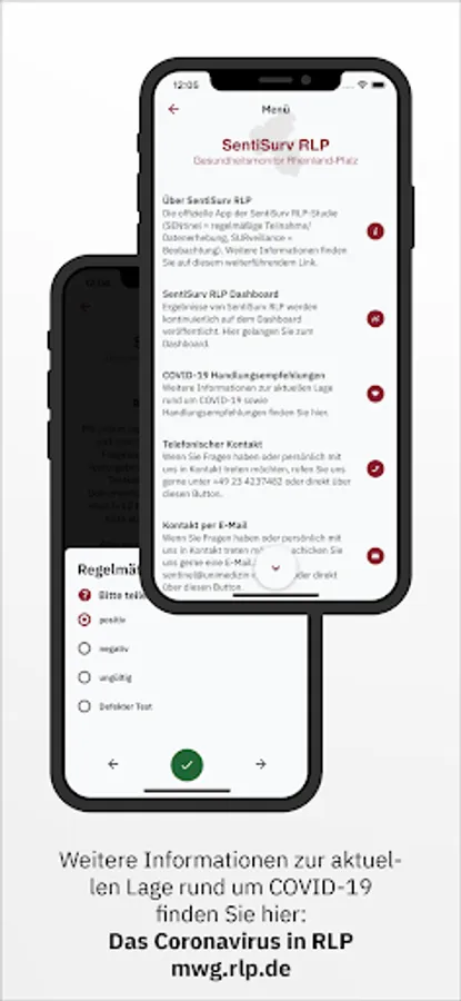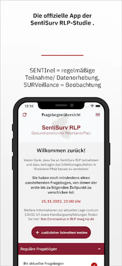 The official app of the SentiSurv RLP study (SENTInel = regular participation/data collection, SURVeillance = observation).