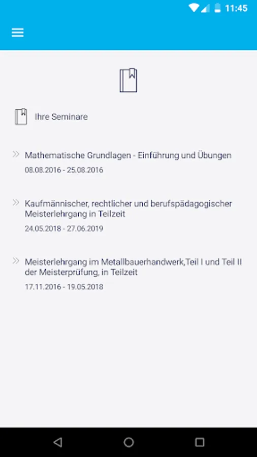 Compact information App of training centers, technical schools or academies for participants of training events: The app gives you like a schedule a practical overview of your activities. The view of the event dates is available in a month view.