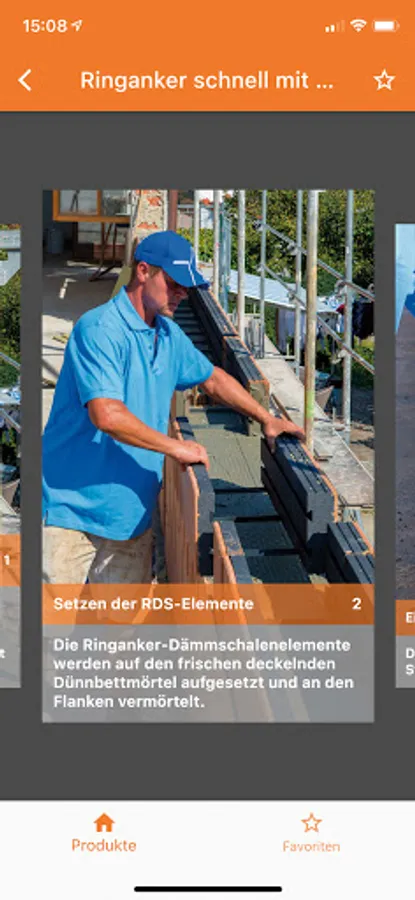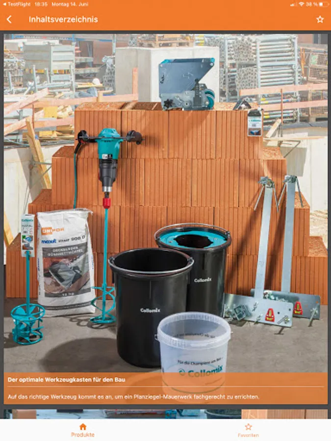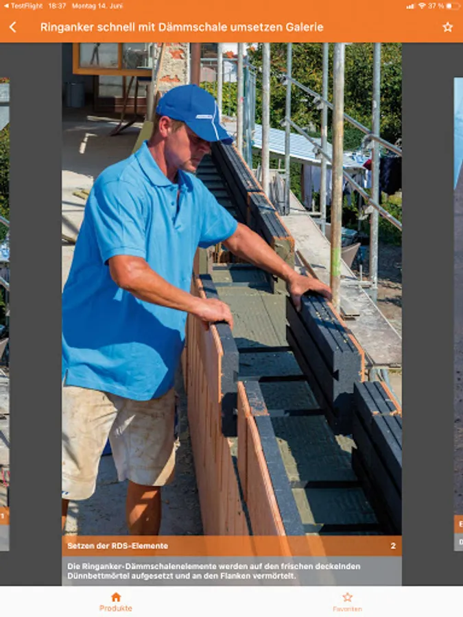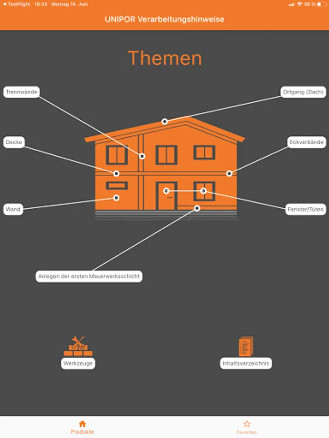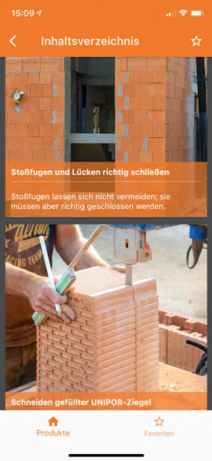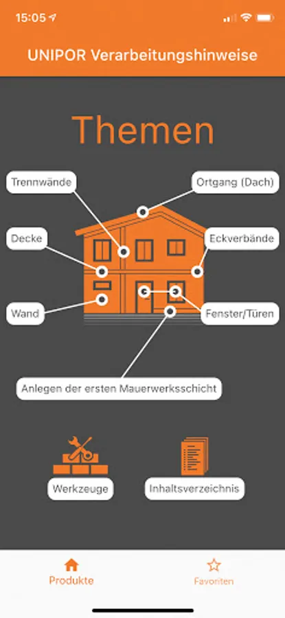 You can quickly access the desired area via the home page with the house symbol. Alternatively, the table of contents offers all the steps from laying the first layer of the wall to the roof.