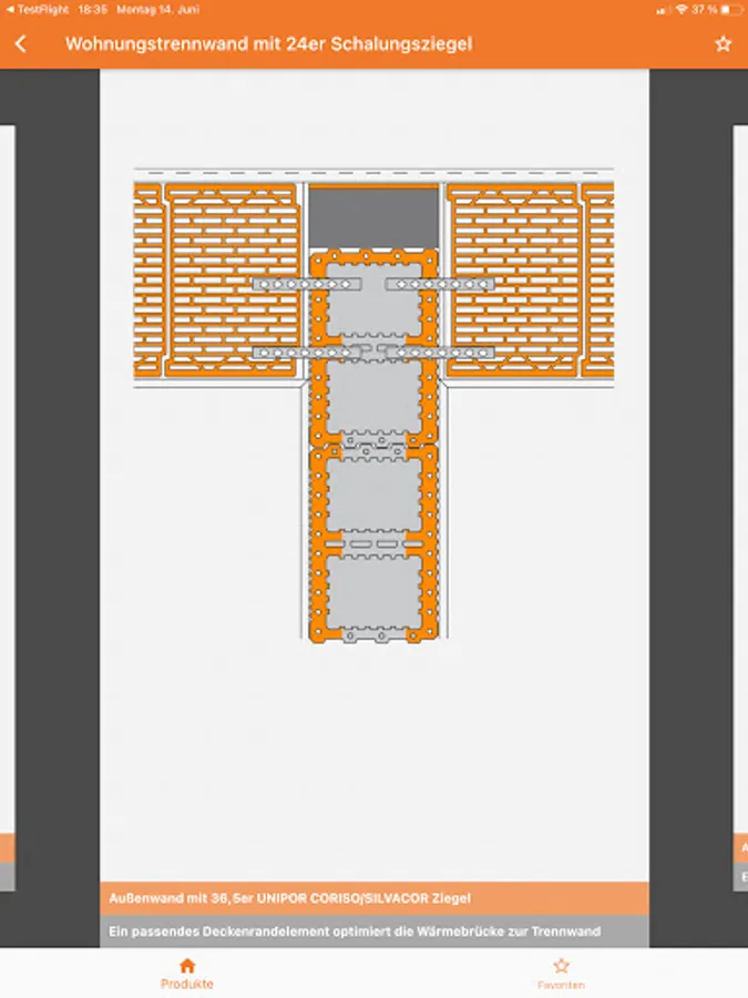 All activities for building brickwork are described in detail in the UNIPOR app. This app also works without a network connection on the construction site. Here you will find practical step-by-step instructions for setting up professional brick masonry with filled or unfilled bricks, including the 3D animations of all permitted corner connections.