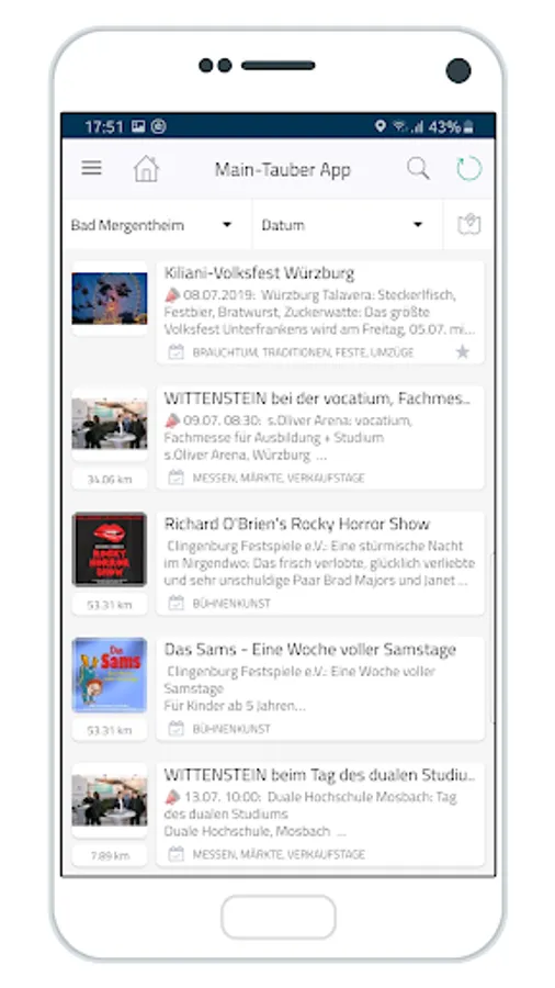 Wear home not only in your heart, but also on your smartphone: With the new app, with which you can experience the region up close. Whether events and concerts, cinema visits, trade fairs, waste calendars and major events or the next wine festival. All information is now clearly presented in a new way. But you can now also easily access a lot of information from your local community. The diversity of your home is also reflected in the offerings of local retailers. The Fränkische Nachrichten presents you with the latest offers from regional trade clearly on your smartphone or tablet. Whether shopping with the family or looking for a snack during your lunch break - explore the inner cities of the Liebliches Taubertal tourist regions with the new Main-Tauber app.