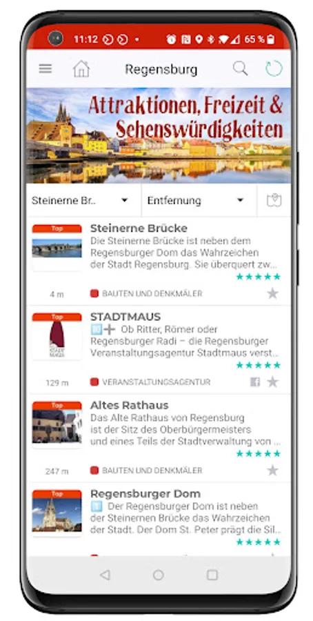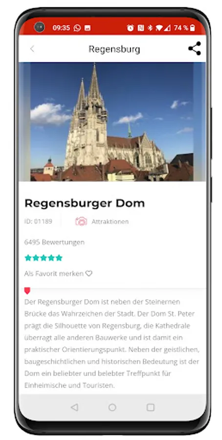 Are you a tourist or are you visiting Regensburg as a guest? Regensburg Regional also offers you a whole lot: accommodation, sights and attractions with pictures, descriptions, opening times and entrance fees and links. The map view with integrated route planner shows you the quickest way to get there.