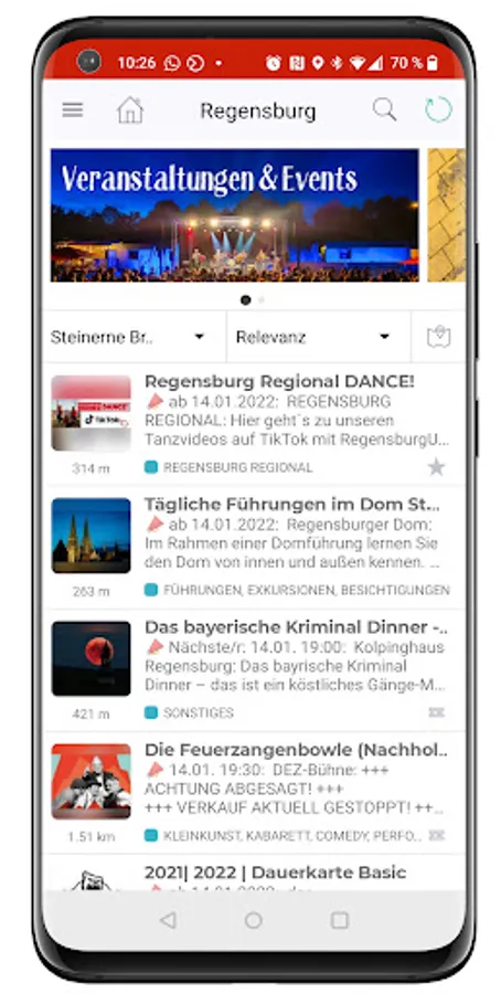 Regensburg Regional puts an end to boring city apps and city apps in which the same content is entered day after day. Our own editorial team provides new, up-to-date content every day, and organizers, dealers, service providers and hosts themselves post news, bargains, events and daily offers in the app - and new entries are added every day.