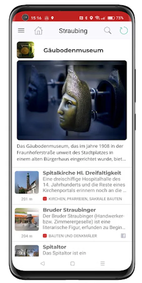 Are you a tourist or are you visiting Straubing and the Straubing-Bogen district? Straubing Regional also offers you a lot: sights and attractions with pictures, descriptions, opening times, admission prices and links. If there are events or events there, they will also be displayed. The map view with integrated route planner shows you the quickest way to get there.