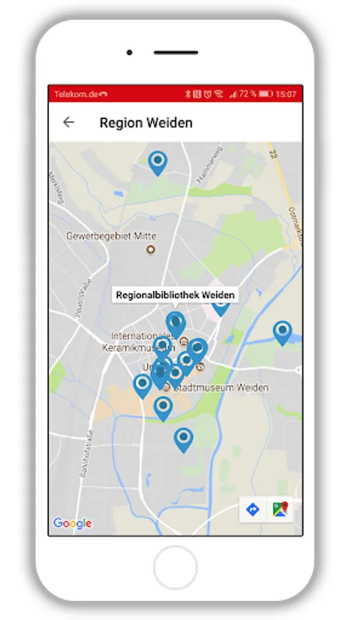 In the near future Region Weiden will show you the way to the nearest playground, public toilet, ATMs, Wi-Fi hotspot, kindergartens, hospital, power station and much more. There are also shopping tips with current bargains, promotions of bistros, pubs and restaurants.