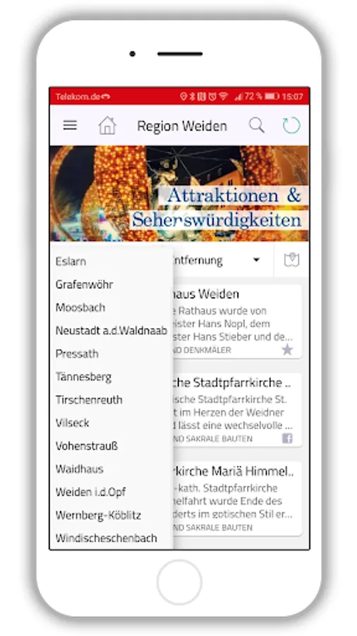 Region Weiden shows numerous sights and attractions of the northern Upper Palatinate, admission prices and opening times are specified and you can also see, when guided tours take place or events are held. You can navigate directly to your destination with app.