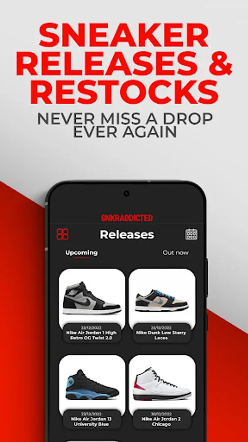 The sneaker app of SNKRADDICTED provides you with the latest sneaker releases, restocks and other hot pairs of sneakers. Never miss a drop again and get the news straight to your phone! We also post about the newest streetwear collections and sneaker sales.