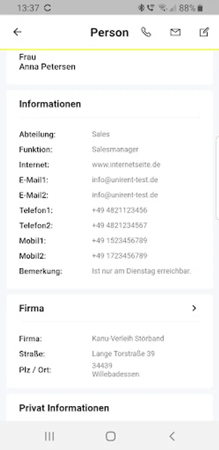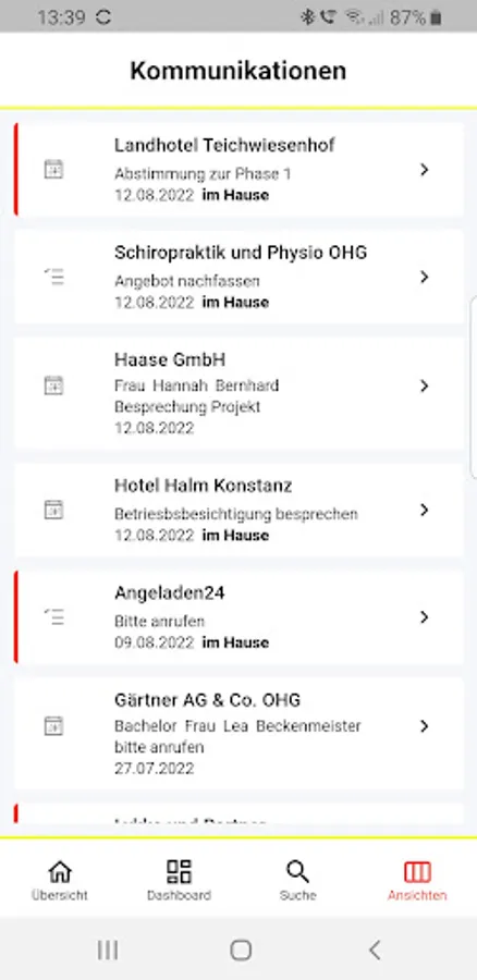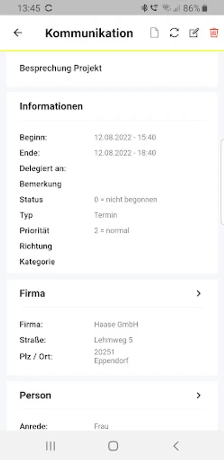 Data changes and communication with your customers recorded in the CRM are immediately accessible on your mobile device. On-site activities can be recorded directly for the customer.