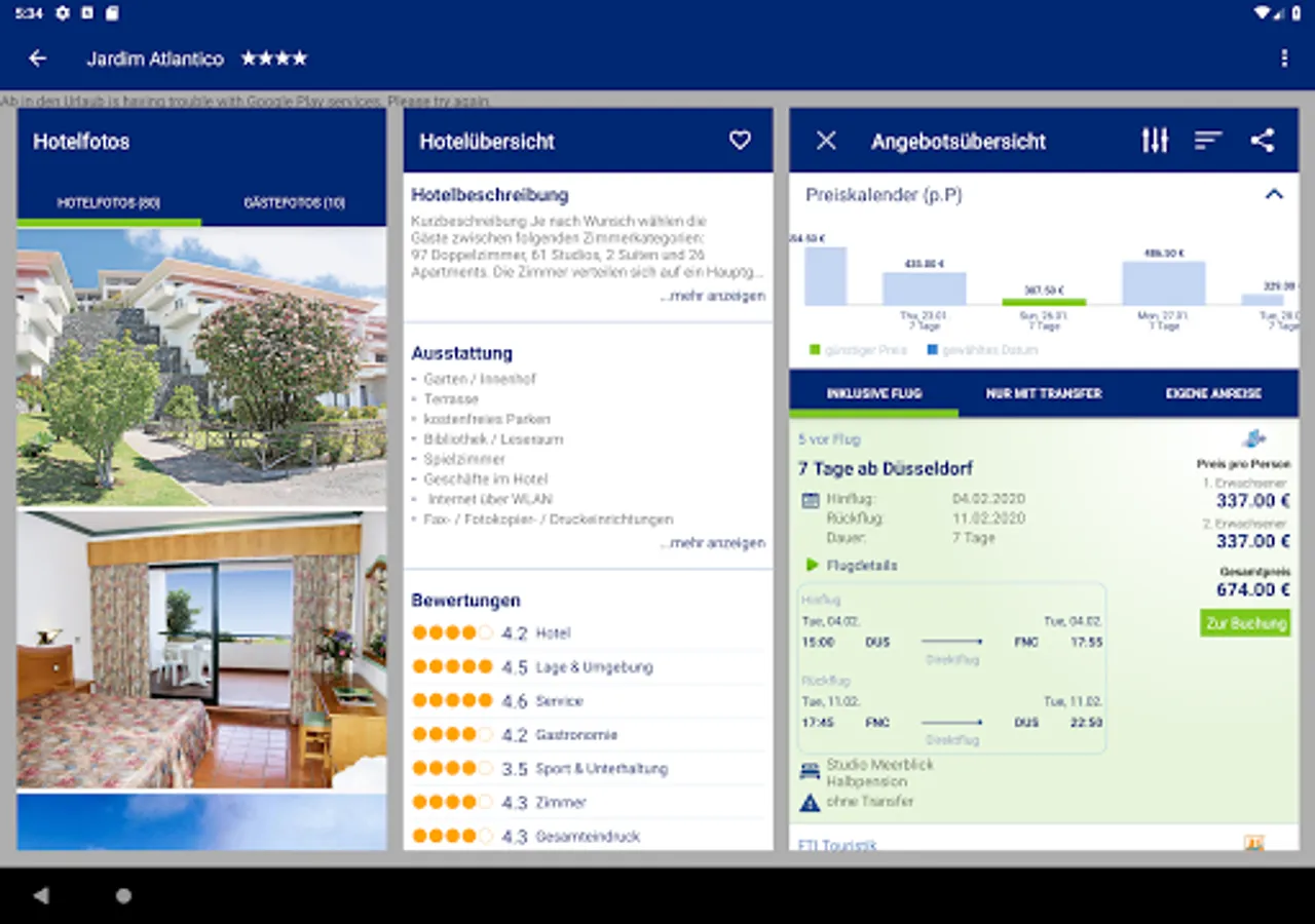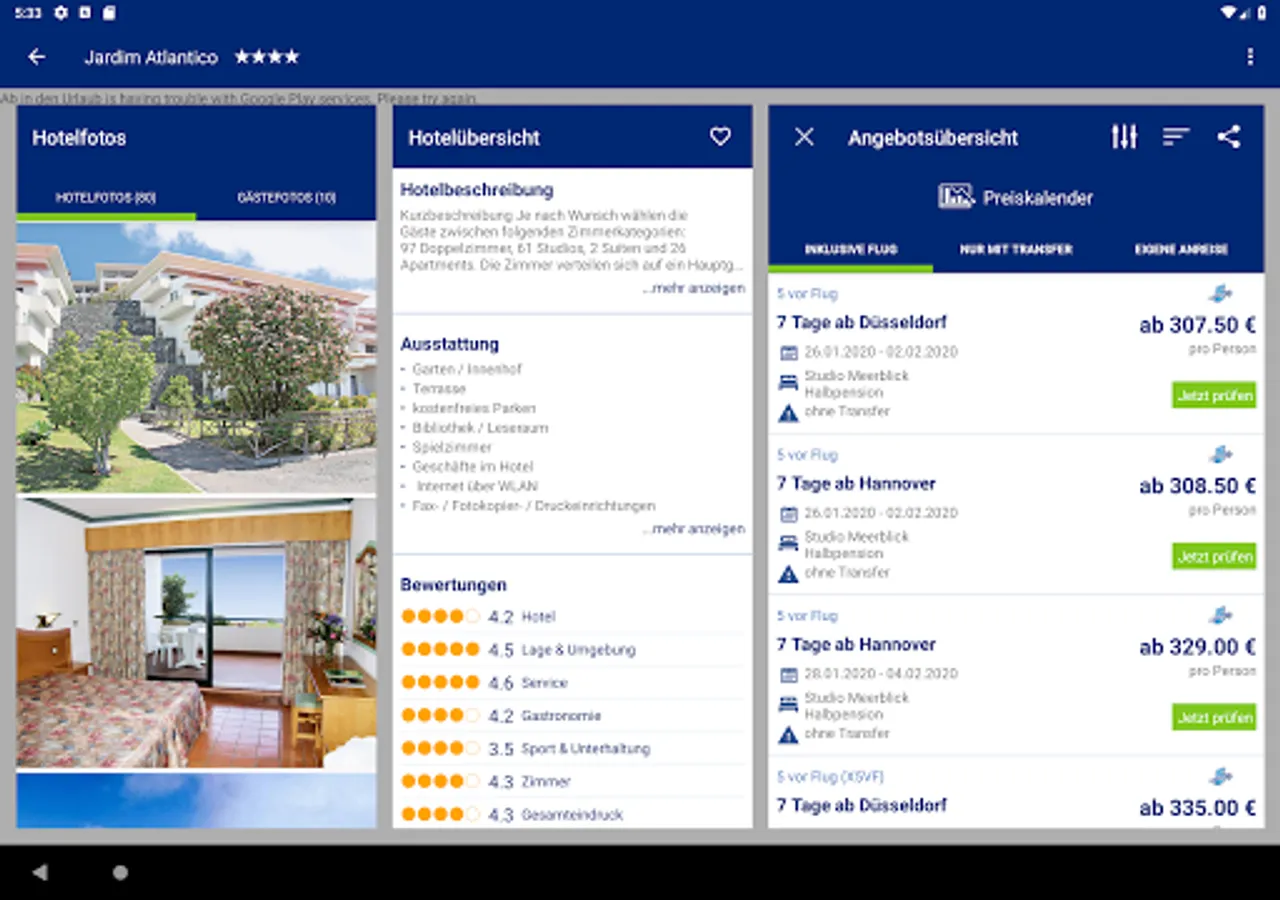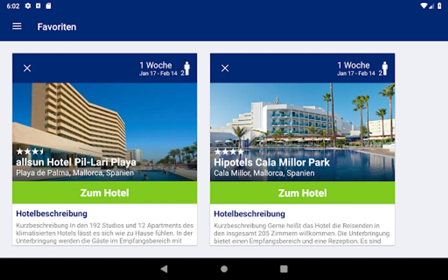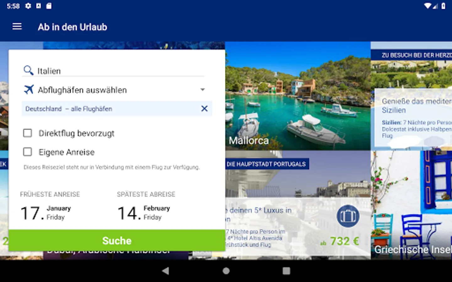 Even if you only want a hotel instead of vacation & flight, the app shows offers that are cheap and up to date in no time at all. Simply filter according to your own requirements and you're done! With the off on vacation you are entrusting yourself to a professional who can not only do package tours. This is how vacation works today!