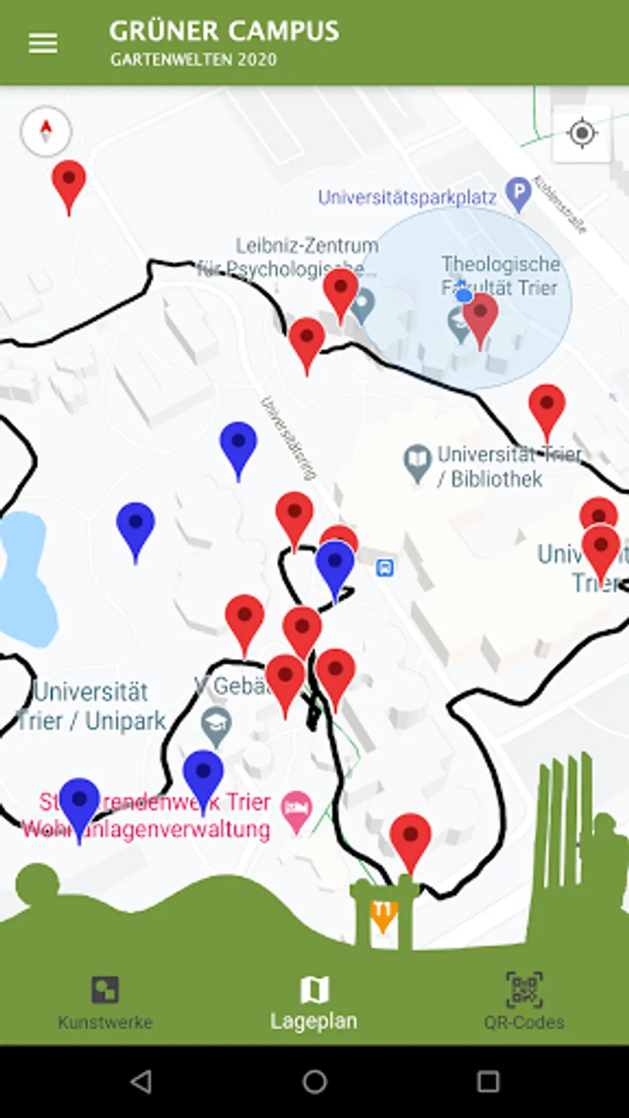 In addition, the corresponding short texts can be called up via QR codes on the respective works of art and the current location on the course can be determined.
