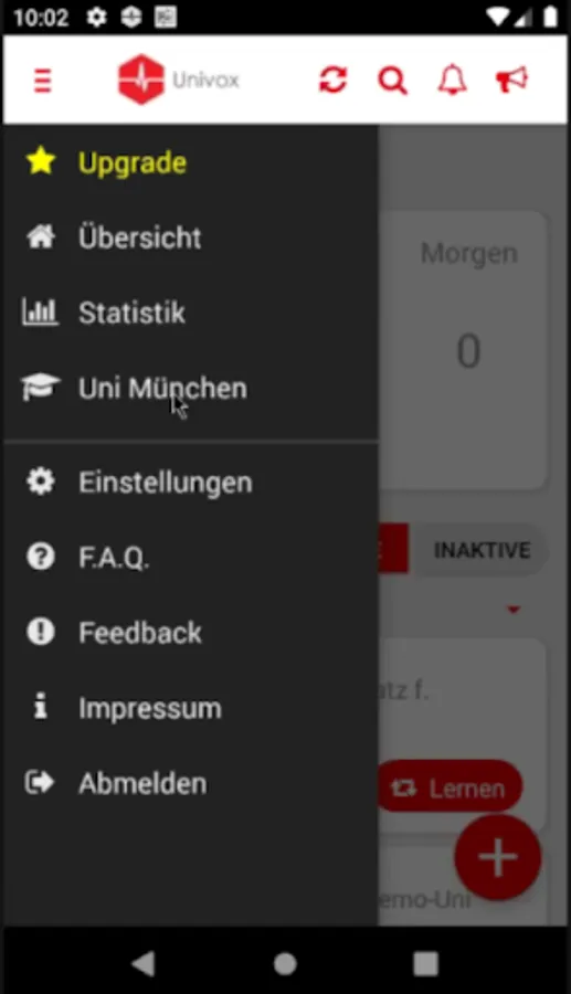 You can also create your own flashcards in the Univox semester trainer to focus on additional content. In addition, you will be supported in your learning process by many great features. Univox creates a learning plan for you and uses specific algorithms to remind you to repeat certain flashcards at the appropriate rhythm so that you can memorize the answers particularly well. Overdressed? The number of questions and the reminder function can be individually adjusted. After you learn a set of cards, you get visual feedback on how well you did.