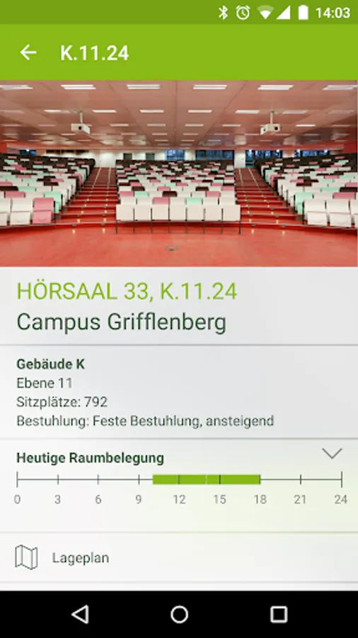 • Campus Navi with live view or map view, including the option to search available rooms by entering your preferred date and time.