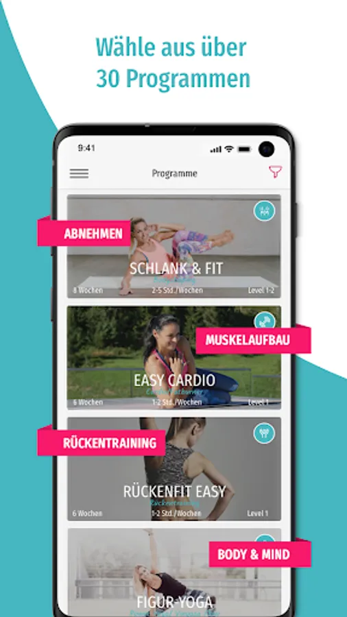Perfectly tailored to your goal and fitness level: Choose from over 30 guided fitness and nutrition programs, 1000 course videos and more than 20 sports exactly the training that suits you - whether yoga, back training, muscle building, Pilates, fat burning or relaxation. Start living a fitter, healthier and happier life today!