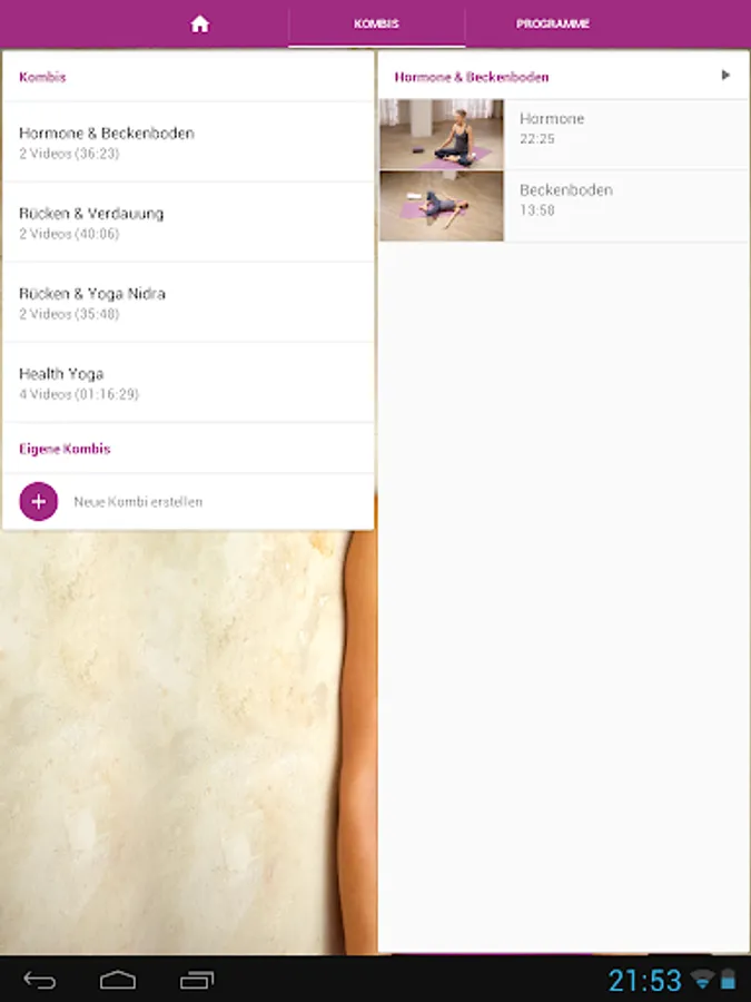 All parts of the program by and with yoga expert Ranja Weis can be selected individually and combined individually. With a few clicks the program can be so easy to personalize and customize proudly take the time budget.