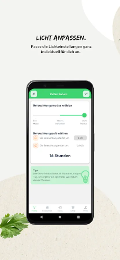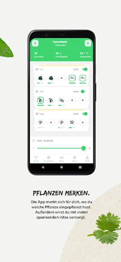 The urbanhive app is your digital companion when using the homefarm. It gives you access to all functions - from controlling the plant light to displaying the temperature and the current growth progress. With the app, you always have a piece of nature with you, no matter where you are: