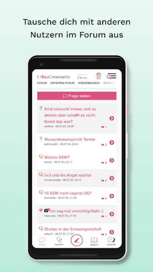 ✓ Exchange with parents who are currently in a similar situation or have already solved this problem • Here you can also discuss family quarrels, doldrums in bed and other sensitive issues in an anonymous way