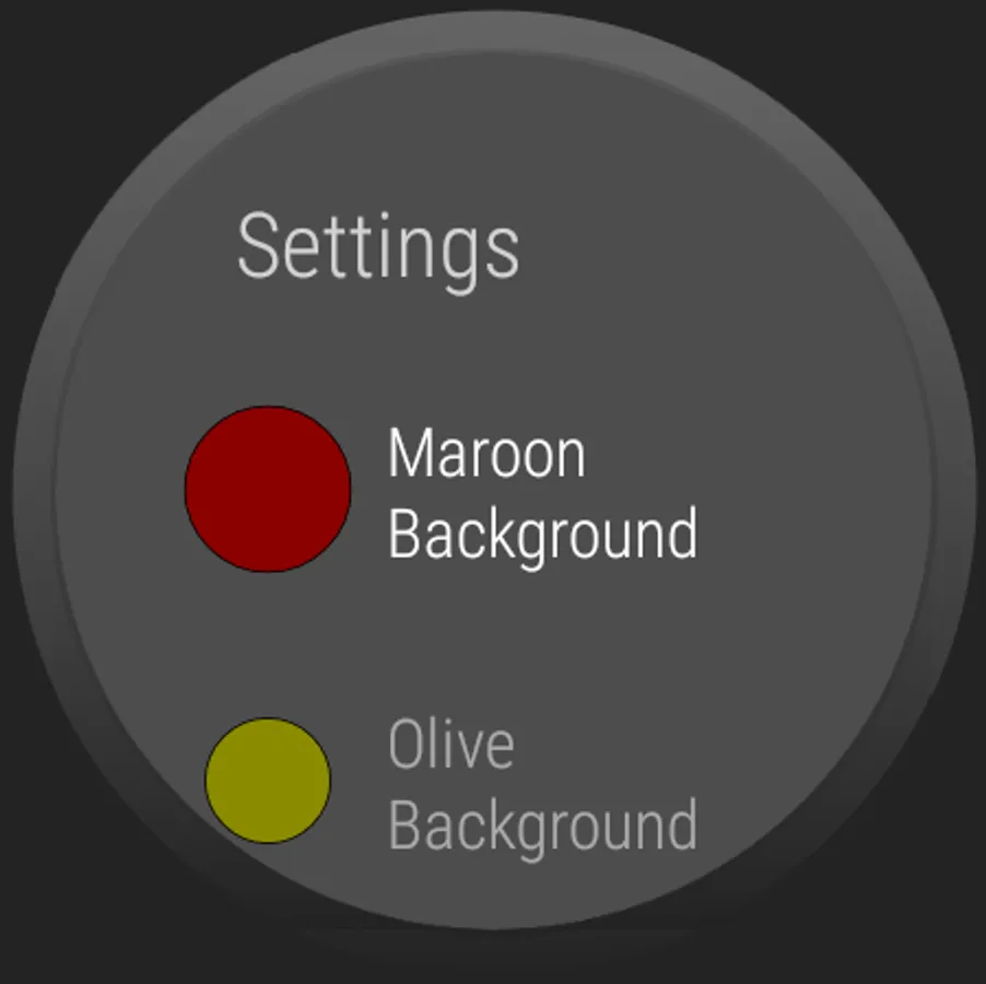 Settings for Background Color, Date On/Off and Gradient On/Off on Watch.