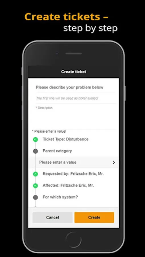 • Tickets can be created quickly with the step-by-step instructions and can be accepted and processed directly – even in offline mode.