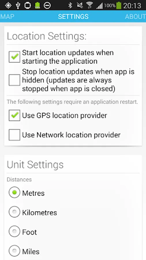 - select which location provider you want to use (GPS or Network or both)