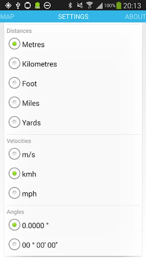 - supported units: metres,yards,feet,kilometers,miles, m/s, km/h, mph, 0.000° and 0°00'00''