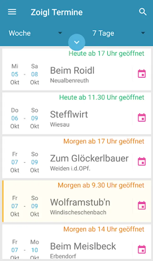 The basis is a digital Zoigl calendar with a clear listing of the current dates, including opening hours on the respective day.