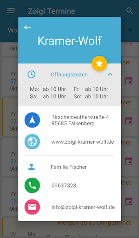 In addition, you can navigate directly to the Zoiglstube, open the website, or contact the operator(s) by phone or email (just use the round buttons).