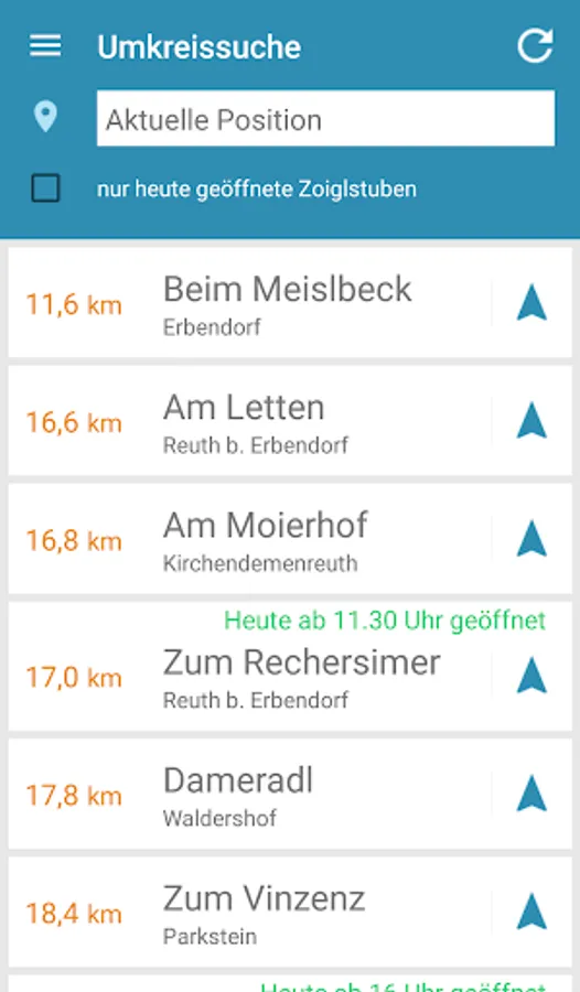 You can use your current GPS position for this (good for excursions), or you can search specifically for Zoiglstuben in the vicinity of an address you have entered.