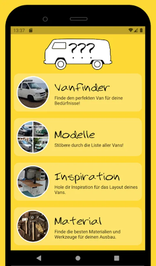 In the future, the Vanfinder will also advise you on the selection of materials so that your expansion will be a complete success!
