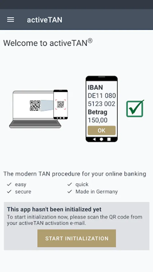 activeTAN is the secure and modern TAN-Process for your Online-Banking. With the activeTAN-App you can approve transactions comfortably on your Smartphone.