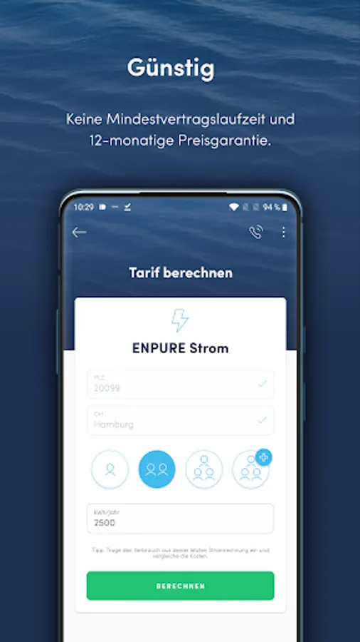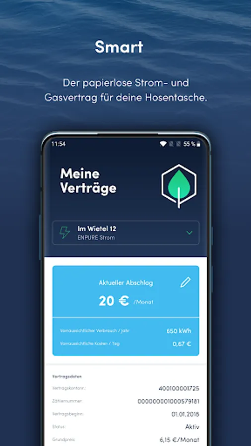 ENPURE is the first electricity and gas contract that you can manage conveniently through an app without any paperwork. CO2-neutral gas and 100% natural electricity from hydroelectric power plants!
