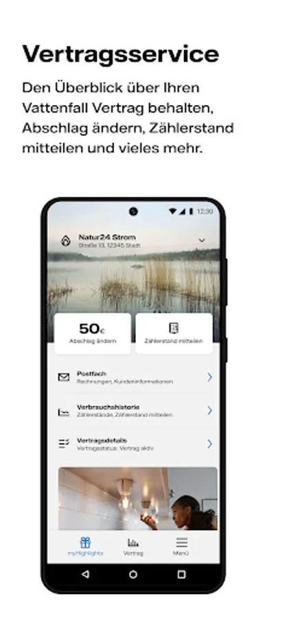You can view your Vattenfall contracts at any time in the contract area of the app. Change your electricity and gas deductions quickly and easily or tell us your meter reading. Here you can also call up all documents at any time and report the next move.
