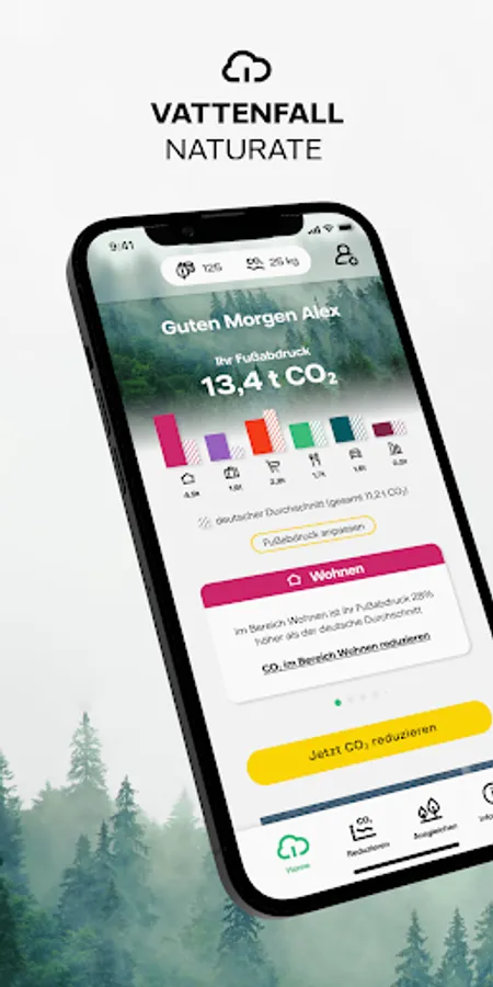 Discover, understand and improve your CO₂ footprint with Vattenfall Naturate - your new companion for a more sustainable everyday life and climate-conscious action.