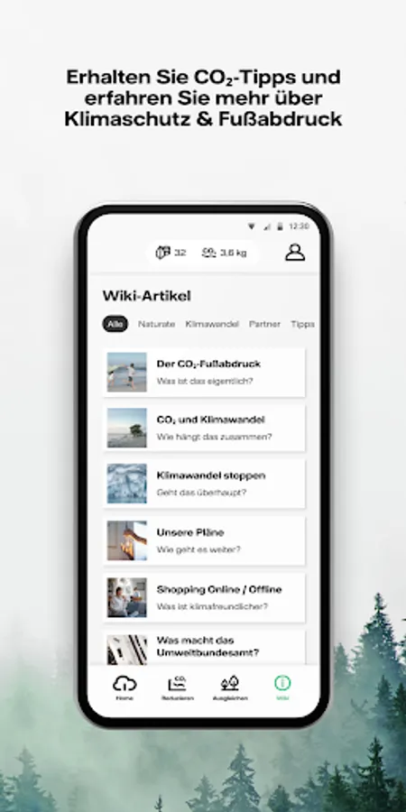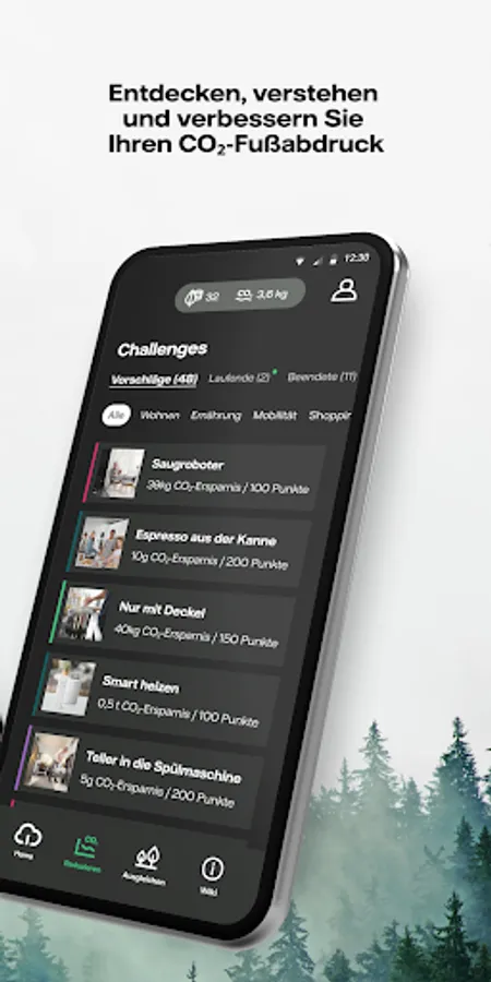 There are many simple measures that can be used to reduce your CO₂ footprint, and you can often save money in the process! We give you personalized suggestions for a greener lifestyle by introducing you to various challenges and tips that enrich your everyday life.
