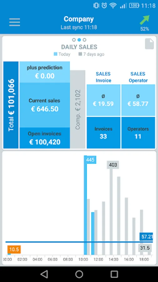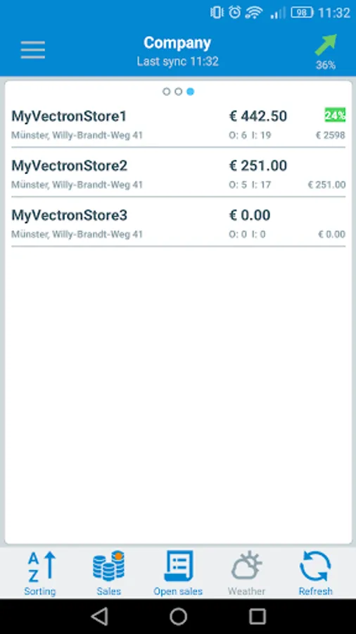 The MyVectron-App provides forecasts for your company or for every single branch; it builds trends and shows you the expected sales by the branch. For trends and forecasts your daily sales are always calculated in relation to the day of the previous week to make the forecast as realistic as possible. The list of branches displays sales, trends and forecasts as well as the number of invoices/customers and operators at a glance. You can sort this list by sales or by other criteria.