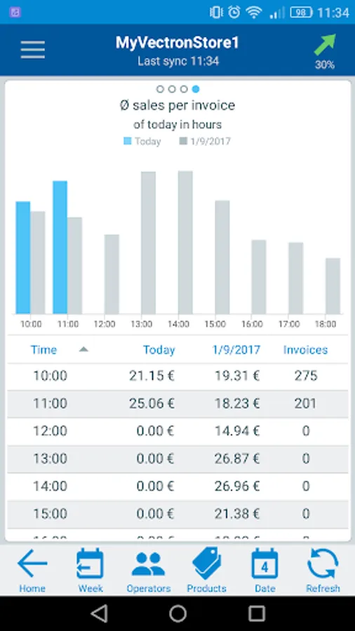 Analysis and reporting tools with clearly arranged dashboards facilitate the controlling. With the myVectron-App you get access to the most important key figures of your company from anywhere, no matter whether you run one or dozens of branches. You always have the overview on current sales, customers, invoices, the number of operators and when the respective sales were generated, each with the reference value. Furthermore, a detailed chart is available for any of these values.