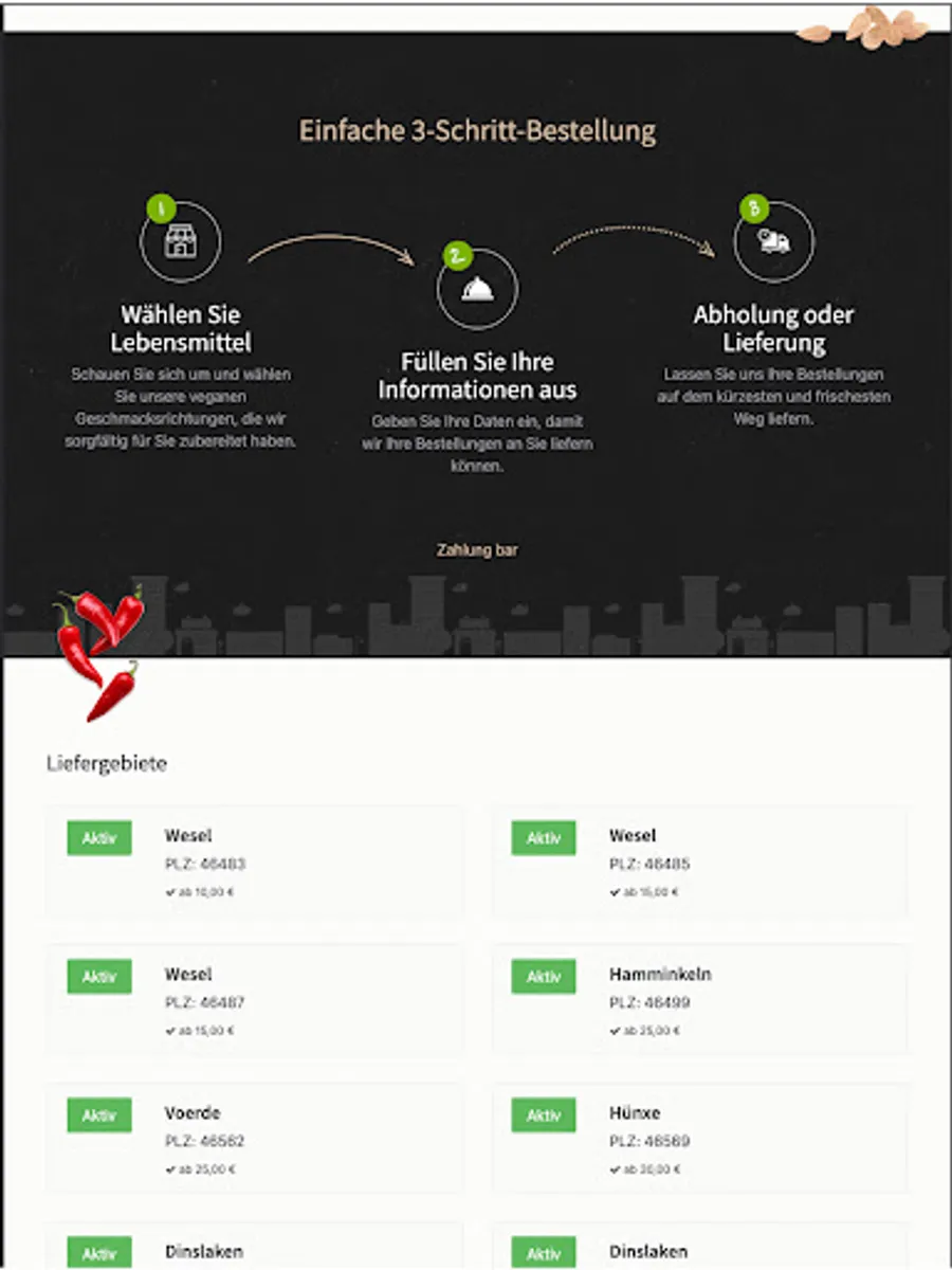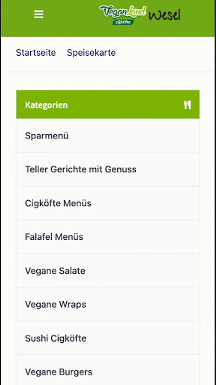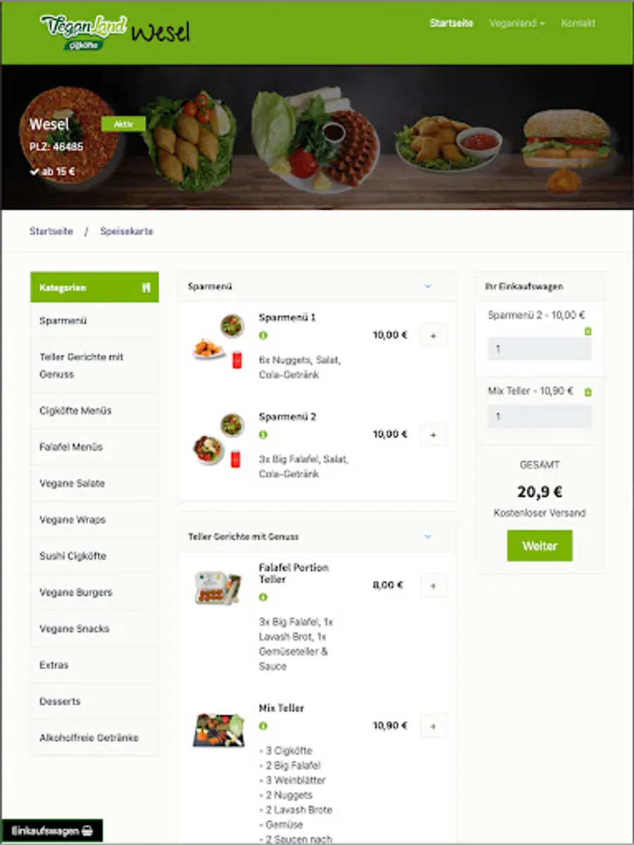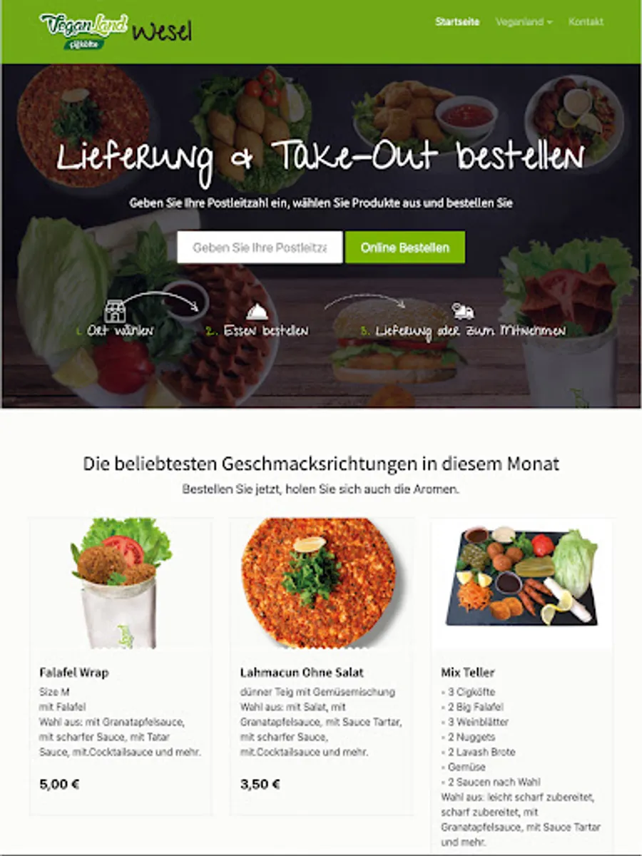 Our application is online, where you can order cigkofte and vegan food from the Wesel and Dinslaken regions in the North Rhine-Westphalia region. Through our application you can order hundreds of foods such as no-chicken burgers, no-chicken nugget burgers, falafel, vegan lahmacun and cigkofte to your address.