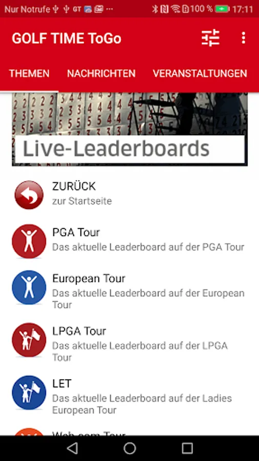 With GOLF TIME to go you are in all matters relating to the game of golf is always up to date. Whether live leaderboards of the major tours, the latest news on international highlights or news to your home Golf Club: Here you get all information at a glance. Including weekly professional tips for your own game.