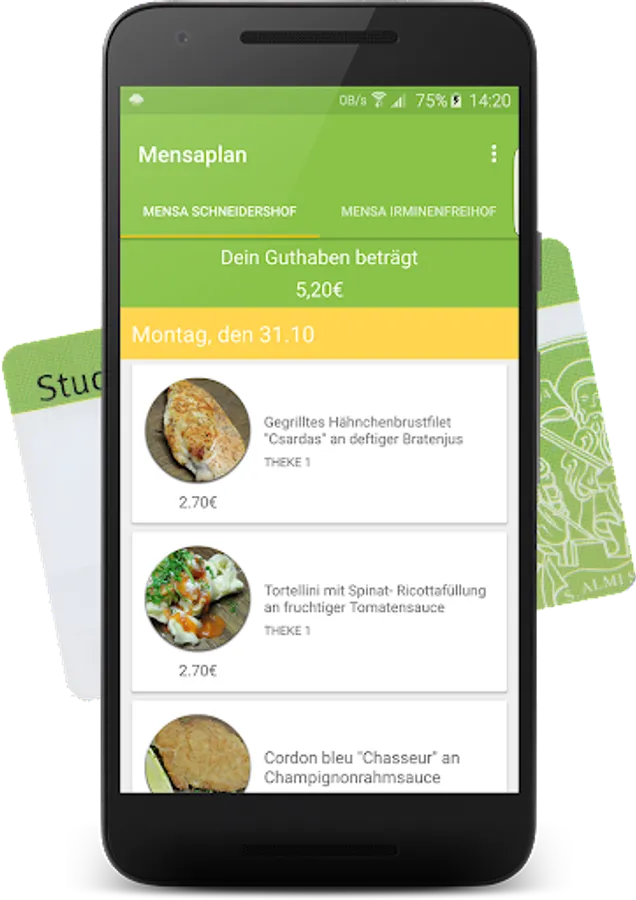 With this app you can quickly and easily look up the daily offer at any Mensa FH Trier. Here you get all the relevant information such as supplements, additives and prices displayed. By today's reviews, you see how many people tasted the respective food.