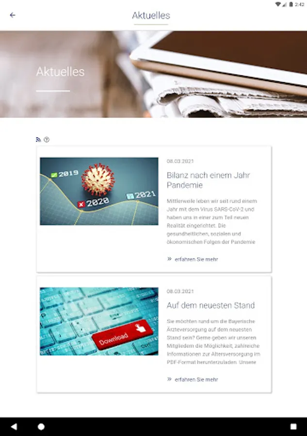 Bayerische Ärzteversorgung turns your smartphone and tablet into a mobile companion when it comes to questions of occupational pensions. You can easily and directly access our service on the go.