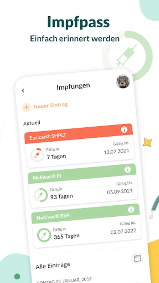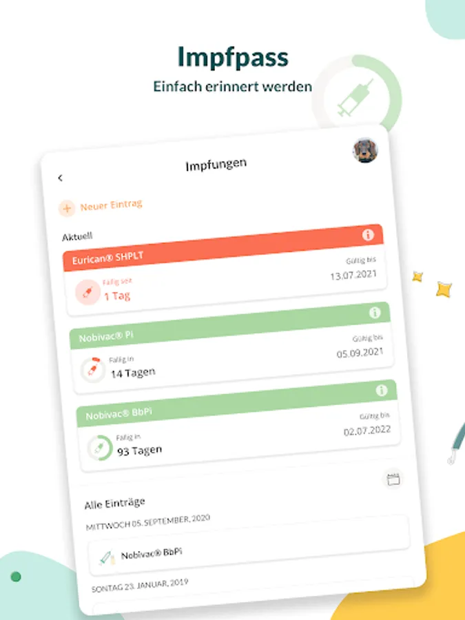 ✔️ Digital vaccination card with reminder function