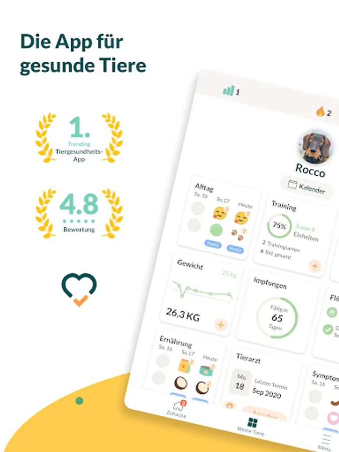 With almost a million users, vetevo is the No. 1 app for dog, cat and horse health and nutrition and helps pet owners everywhere to do the best for their pet. vetevo supports you in achieving the best possible health care for your four-legged friend, accompanies you in your search for the perfect food & provides you with the right products and information.