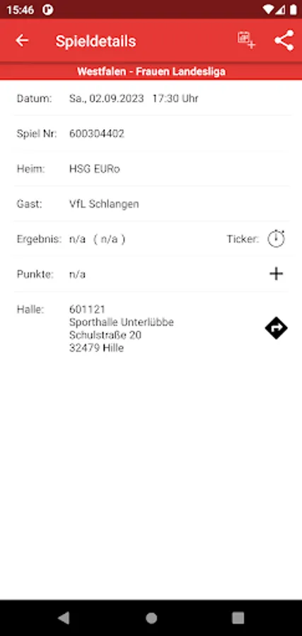 - Home game calendar to display the next home games of all VfL Schlangen teams