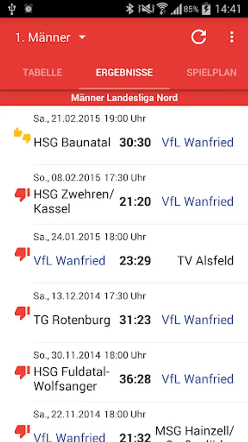 With this app you have scores, results and fixtures of all VfL Wanfried- teams always in view.