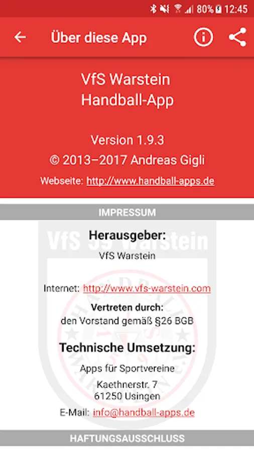 The official handball App of VfS 59 Warstein.