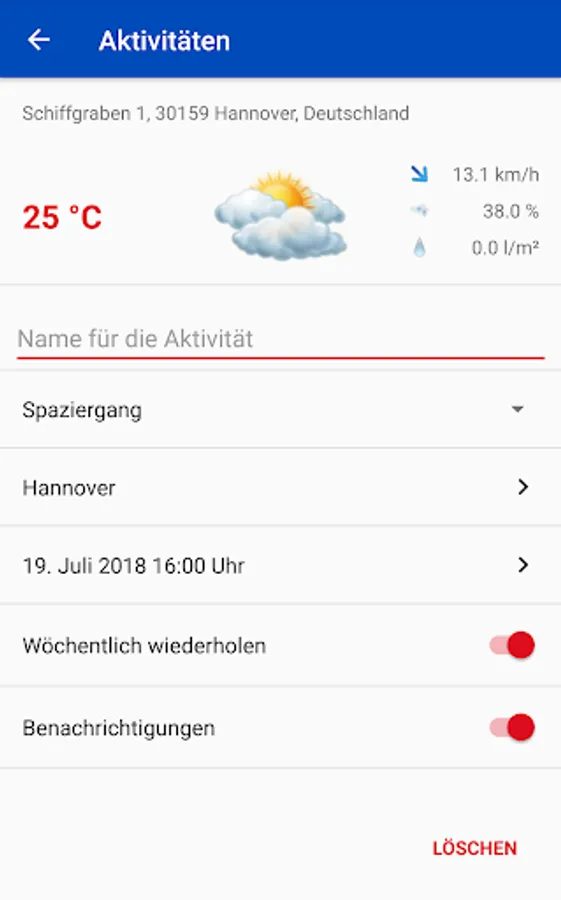 • Current weather for the current location and up to 10 individually selected locations within Germany and Europe