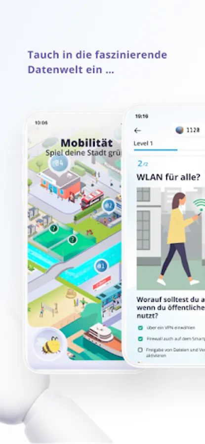 Dive into the virtual city and learn everything about data-supported technologies in your everyday life. Playfully build up your data knowledge. The more content you edit, the more colorful your city becomes.