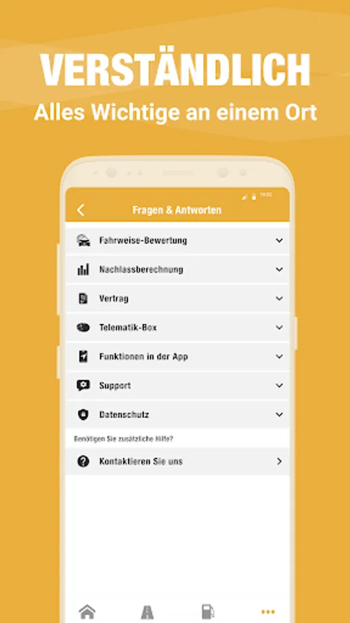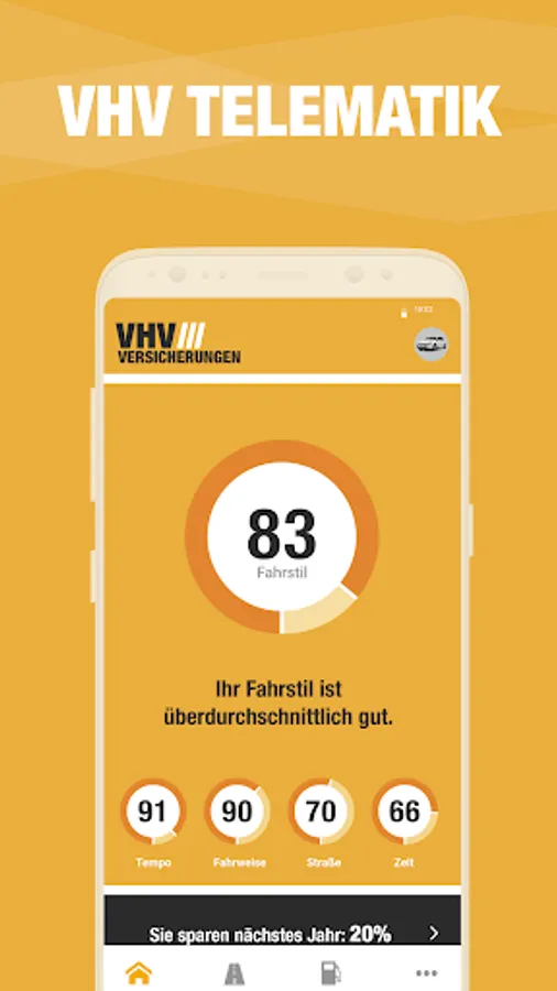 Have you decided on VHV telematics? With this app you have access to the most important information about your own driving behavior and your current telematics discount (max. 30% of your insurance premium). Clever additional functions in the app, such as the gas station finder, also simplify your everyday traffic. We wish you a good and safe journey.