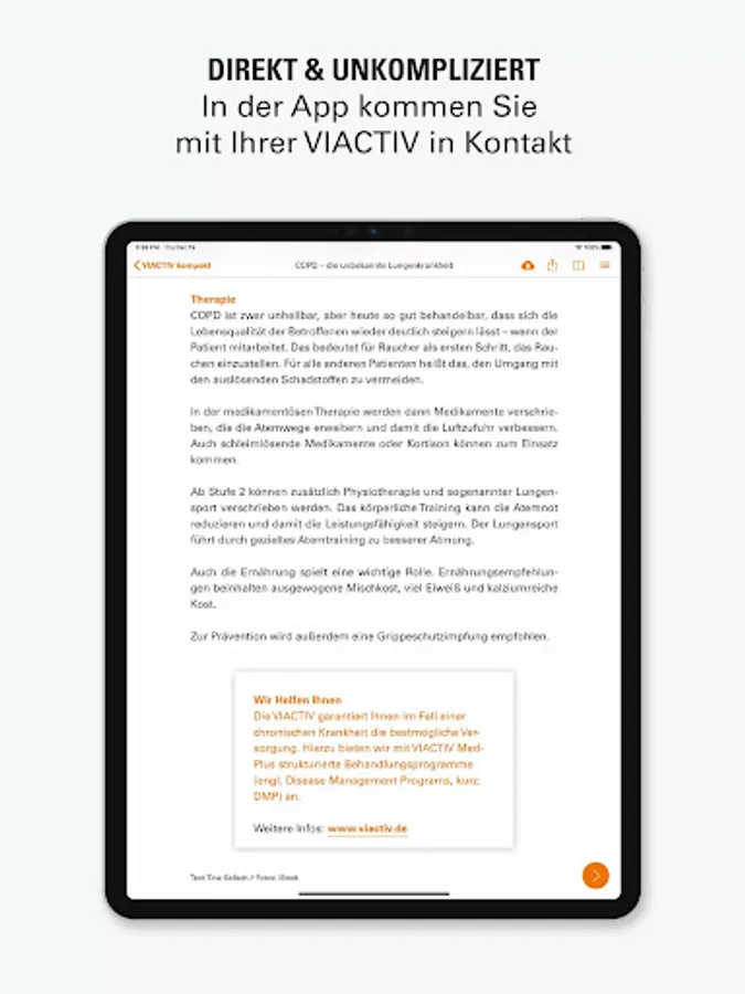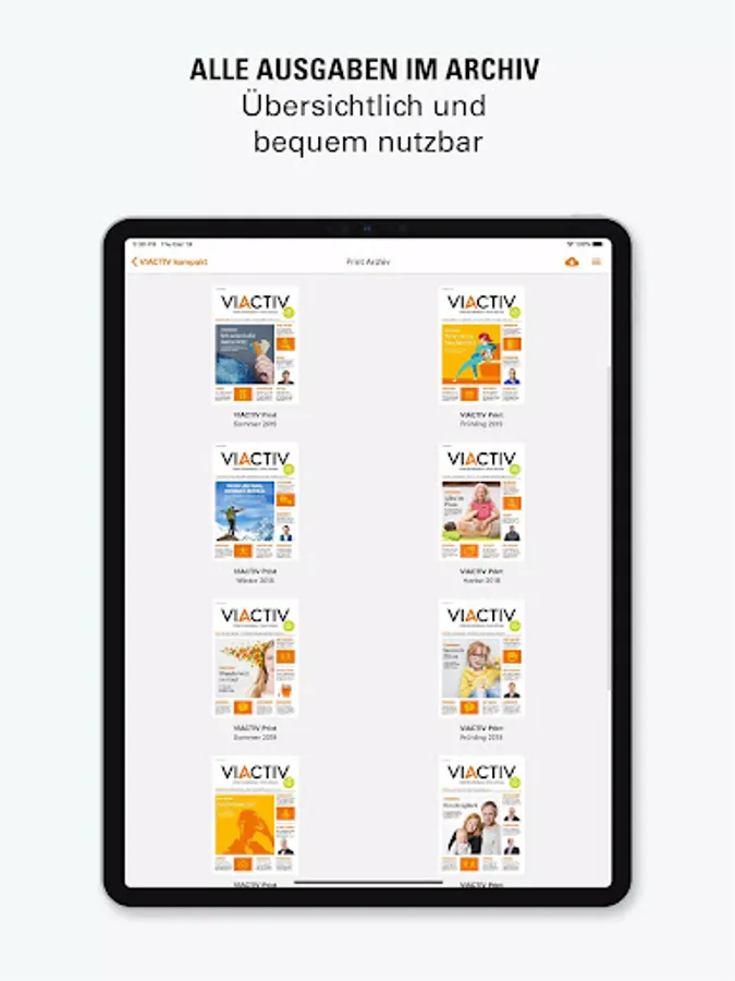 Experience your VIACTIV in the digital edition as actively and closely as never before. Interactive graphics make reading fun and make complex information easy to understand. Videos show you how to prepare a healthy meal quickly and easily. Including shopping list of course. And most importantly: As a member, get in touch with your VIACTIV more directly and easily than ever before. Direct links, interactive information boxes and contact forms ensure that you can easily book a health course, find out everything about VIACTIV's services on individual subject areas or give praise and criticism directly.