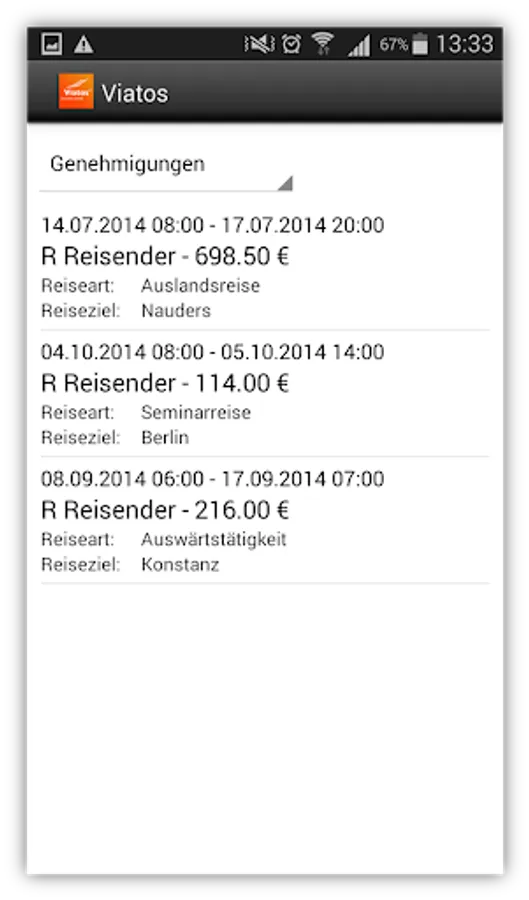 Authorized users can approve travel requests (before the trip) and travel expense reports (after the trip) quickly and easily via the app. The approver immediately sees the most important travel data and can approve or reject the application with one click.