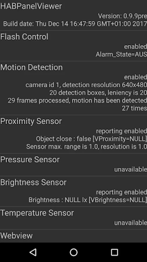 Features include: Auto-discovery of your openHAB server, Home Screen/Launcher, Kiosk Mode, Integration to use and set openHAB "Items", Motion detection, Several screen control options, Volume control, flashlight control, ability to report various tablet sensor/statues back to openHAB Items, many more!
